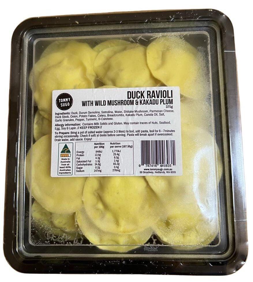 Introducing our mouth-watering Duck Ravioli with Wild Mushroom & Kakadu Plum, a true gem in our best-selling lineup.