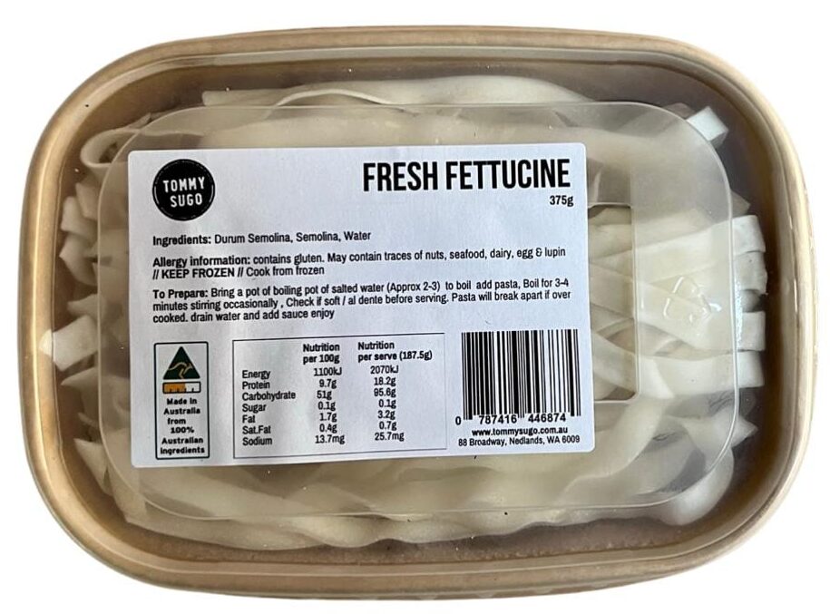Fresh Fettuccine is spaghetti that we jump on until it’s flat! Look I have to be honest, I know our customers love our fresh fettuccine but I can’t get too excited about it. It’s kind of, dare I say it, boring…at least when you compare it with our amazing and full of flavour raviolis, tortellinis, lasagnas etc.