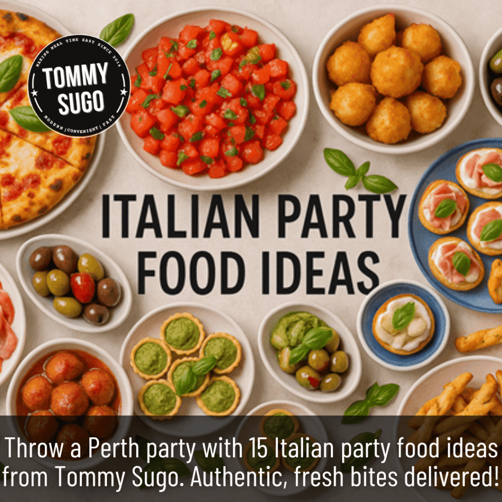 G’day, Perth party animals! If you’re gearing up for a big bash and need Italian party food ideas to get your mates buzzing, you’ve hit the jackpot. We’re Tommy Sugo, Perth’s top gourmet meal delivery crew, and we’re all about bringing Italy’s tastiest dishes to your doorstep. No artificial muck here—just fresh WA ingredients turned into cheesy, saucy, downright delish grub. From Freo to Scarborough, our Italian party food ideas will make your next shindig the talk of the town. Picture your guests scoffing arancini and raving about your hosting skills. Ready to dive in? Let’s get this party cooking!