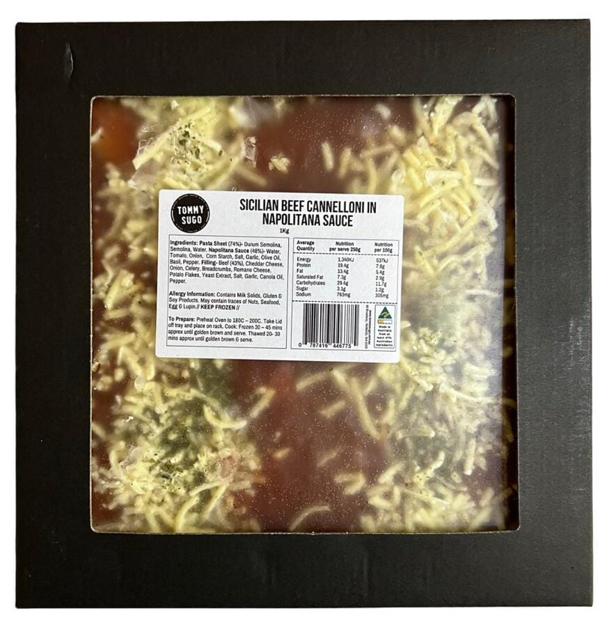 Coated in napolitana sauce, the Sicilian Cannelloni is Sam (Nathan the Tommy Sugo Founders Sicilian father-in-laws own traditional Sicilian recipe).